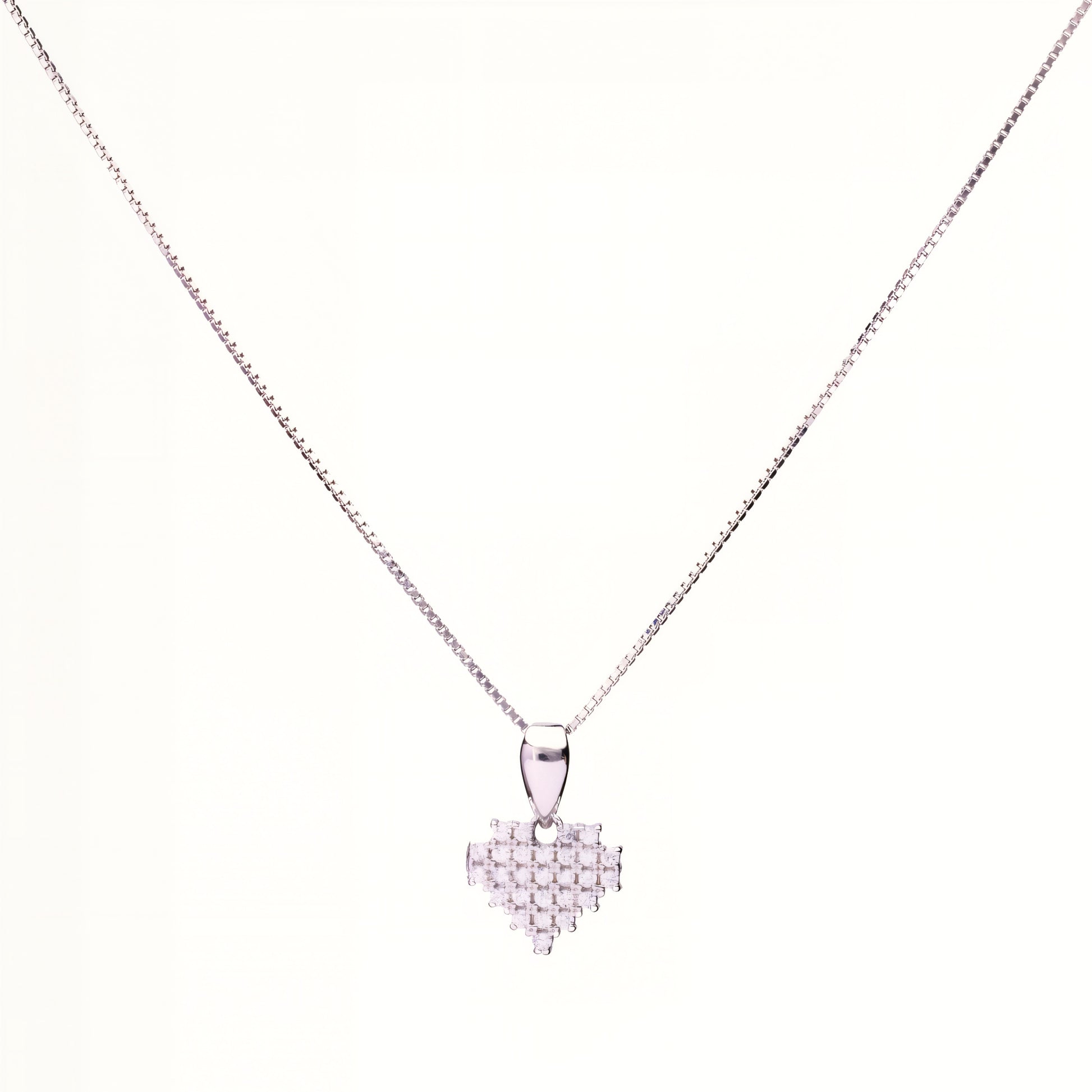 A delicate silver necklace featuring a heart-shaped pendant adorned with sparkling zircon diamonds. Elegant and charming, perfect for adding a touch of romance to any look.
