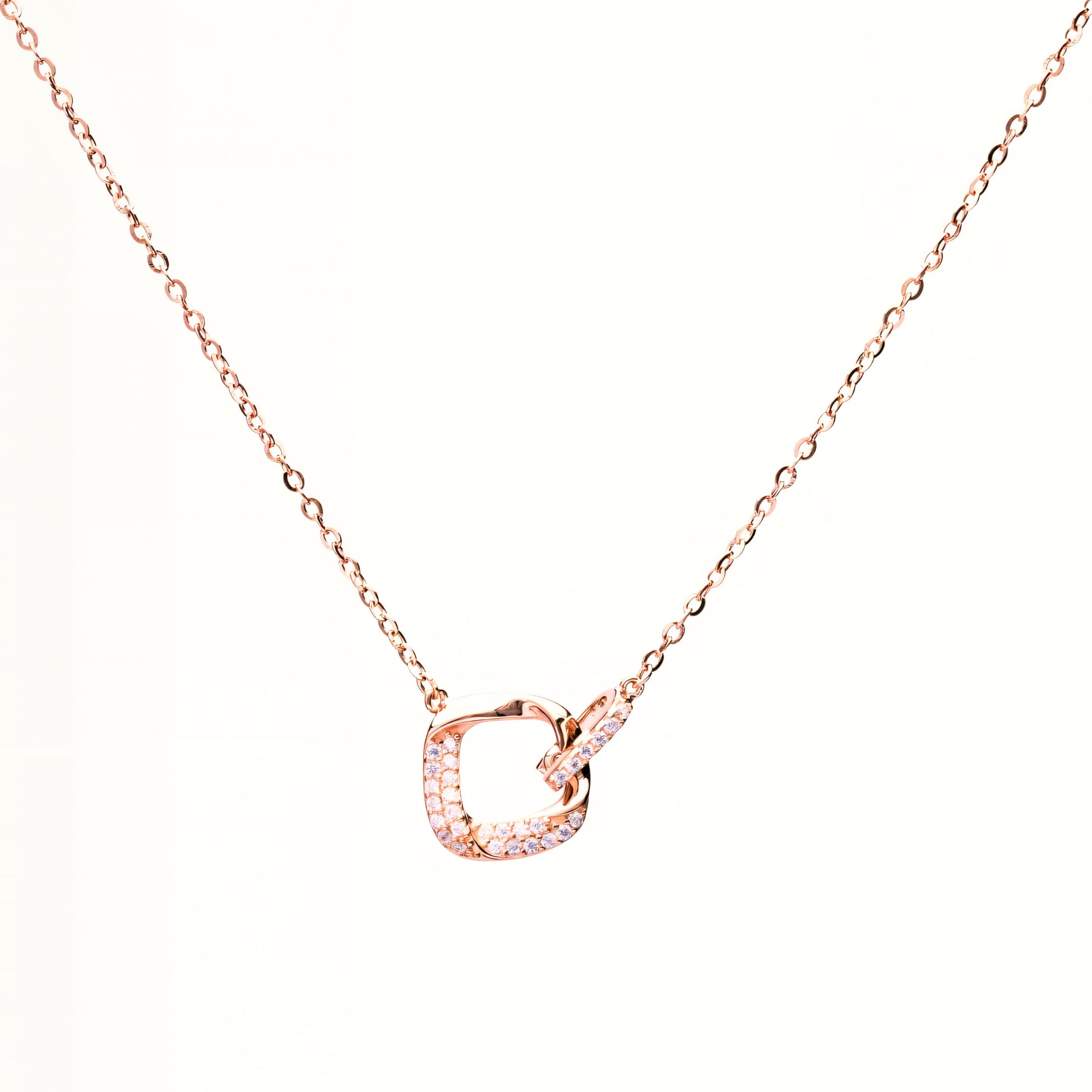 Crafted in refined detail, this pendant highlights a hollow square with twisted zircon borders, seamlessly linked with a slender bar for a modern look.