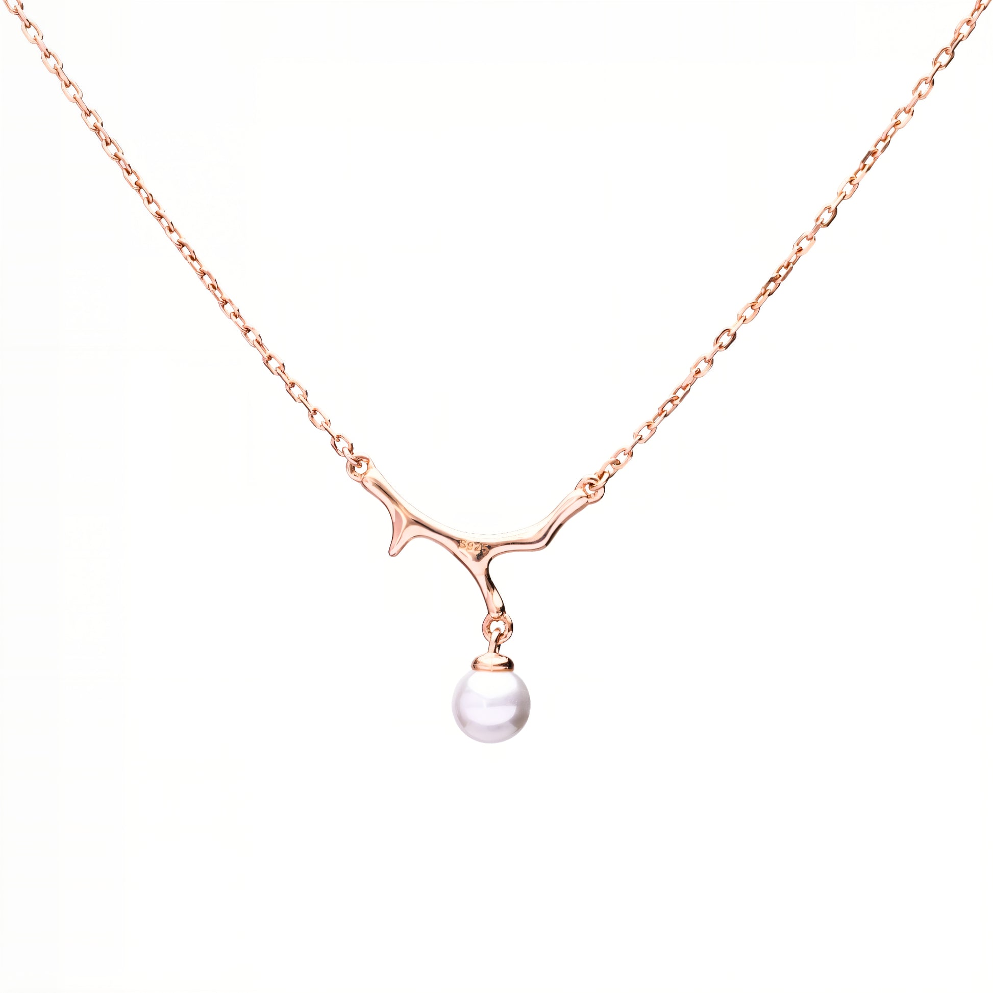 A graceful rose gold necklace featuring a single dangling pearl that exudes timeless charm. Minimal yet elegant, it adds a soft feminine touch to both everyday and special looks.